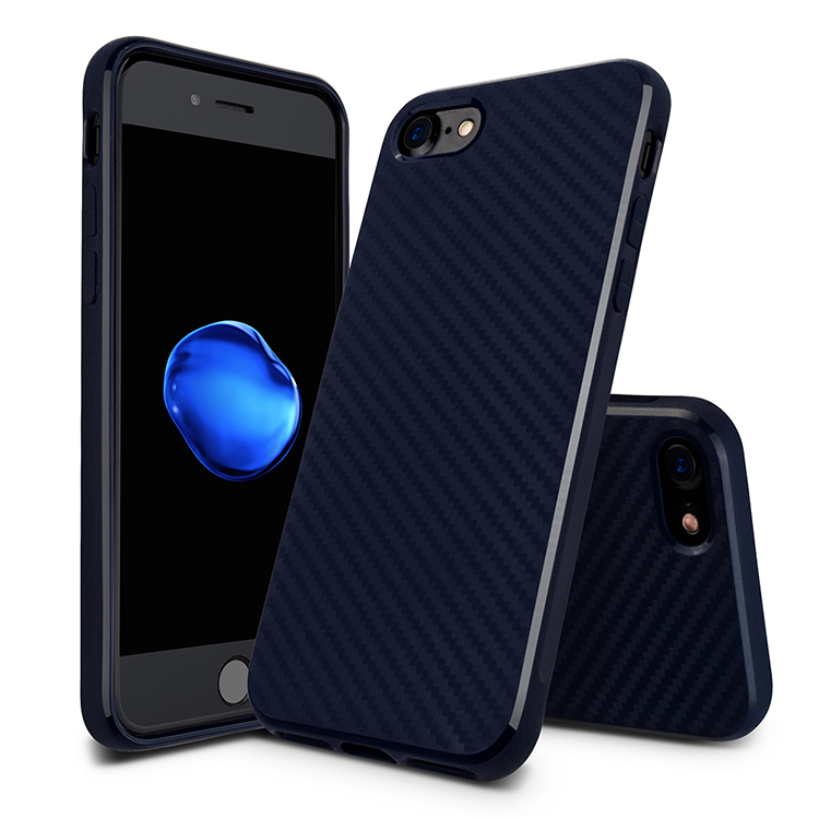 Carbon Look TPU Hoesje Apple iPhone 7 Donker Blauw