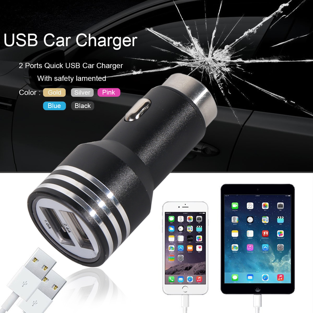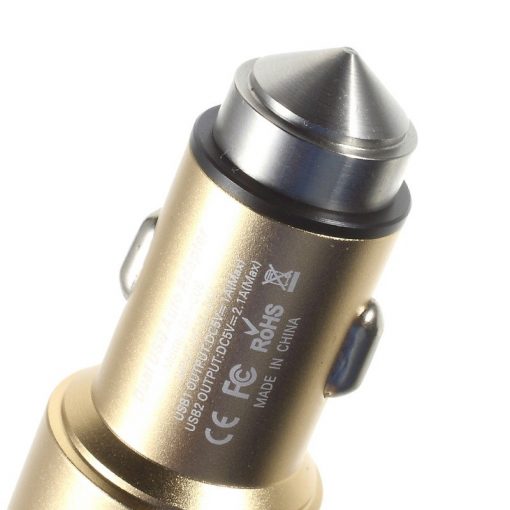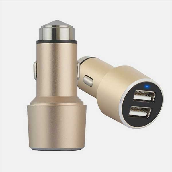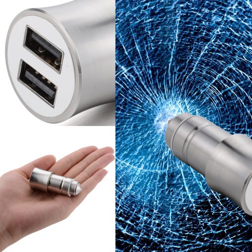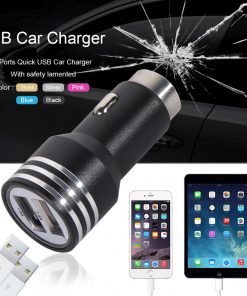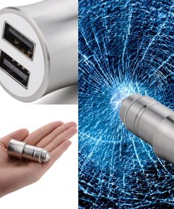 Universele 2 usb autolader die 2 smartphone’s tegelijk op kan laden, met efficiënte verkoeling met aluminium behuizingoutput : DC 5V 2.1A/1A. Mocht je ooit in een nare situatie komen dan trek je de autolader eruit en kan deze functioneren als veiligheidshamer die met een makkelijke beweging het raam kapot maakt.
