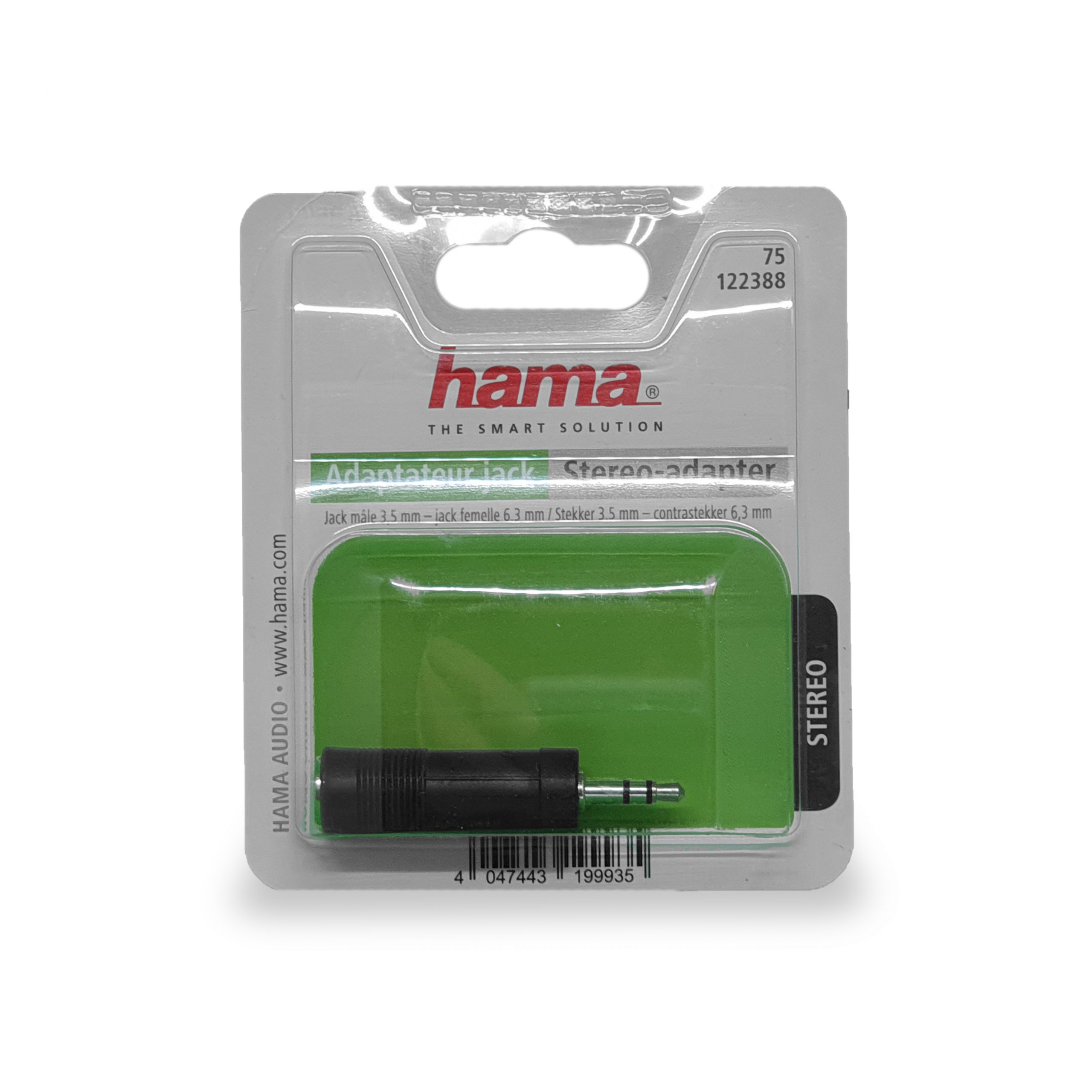 Met deze Hama Stereo-adapter kan je een microfoon of koptelefoon met een contactstekker van 6,3 mm aansluiten op een stekker van 3,5 mm.