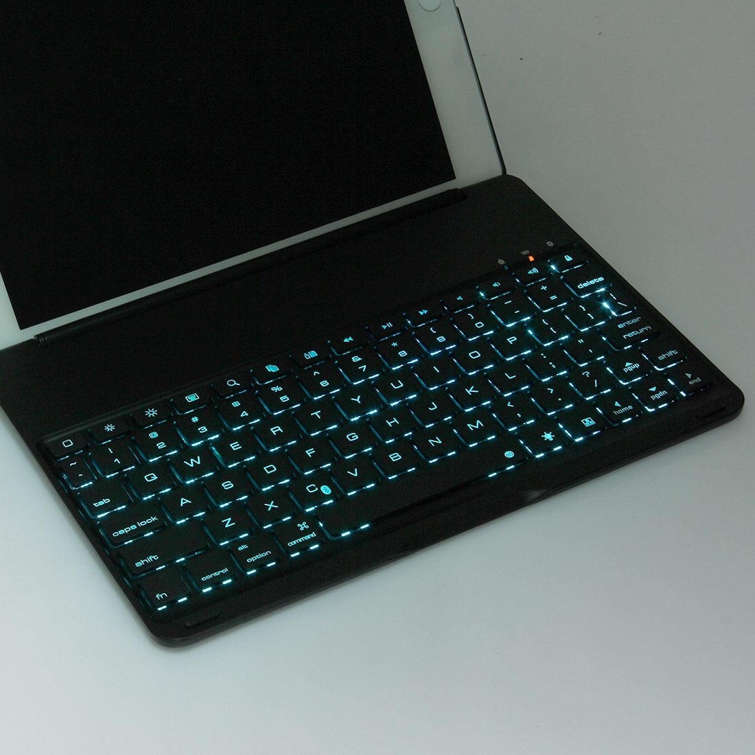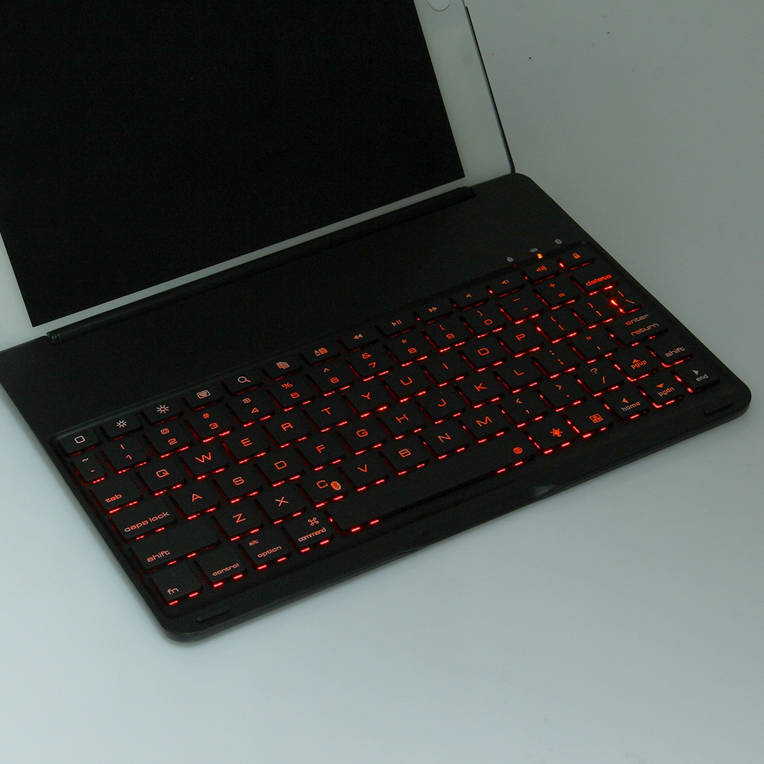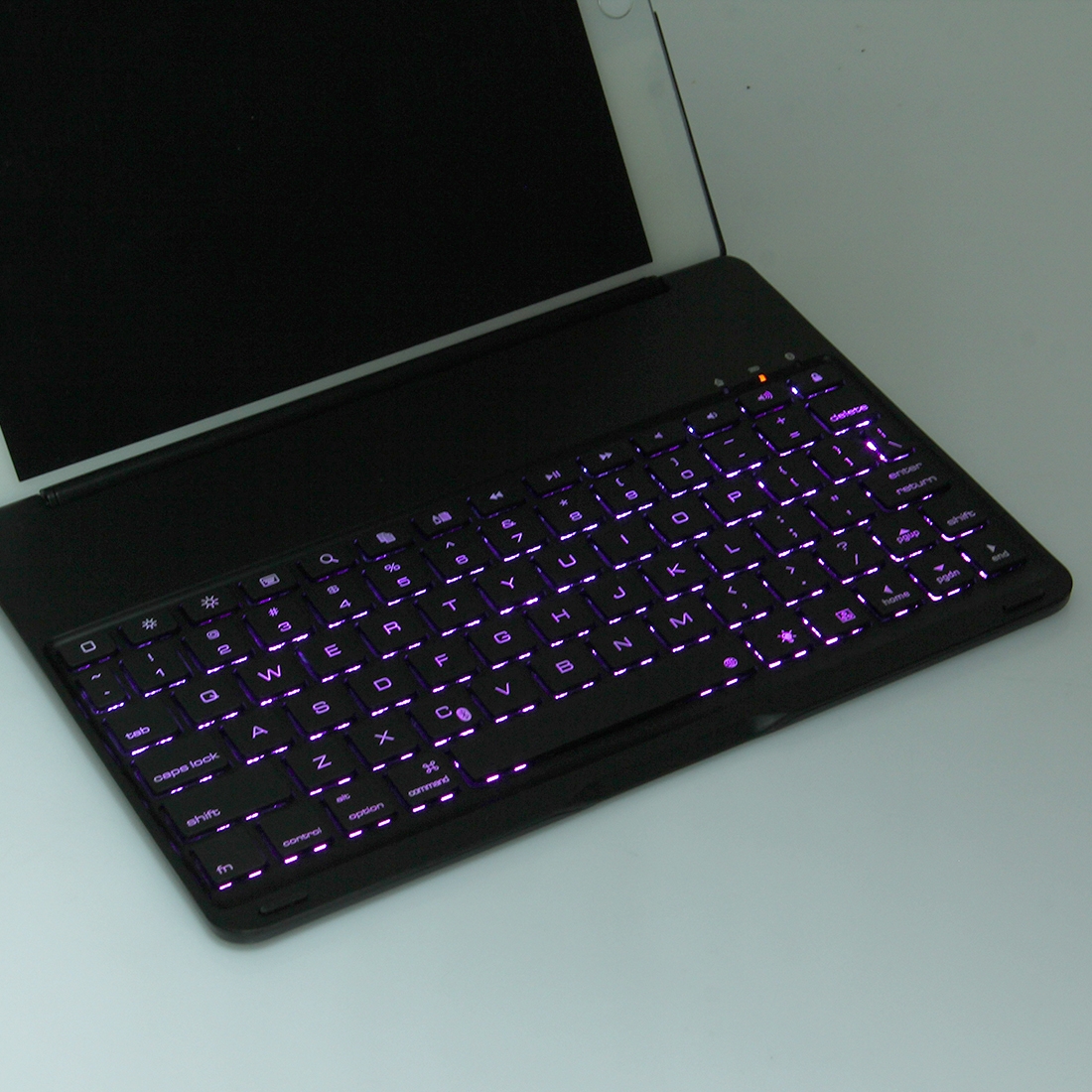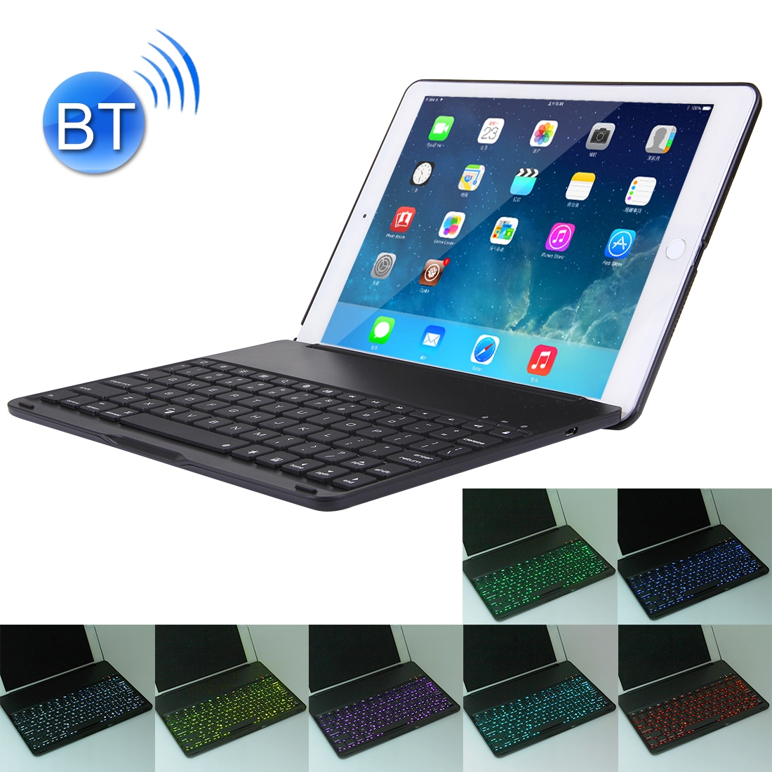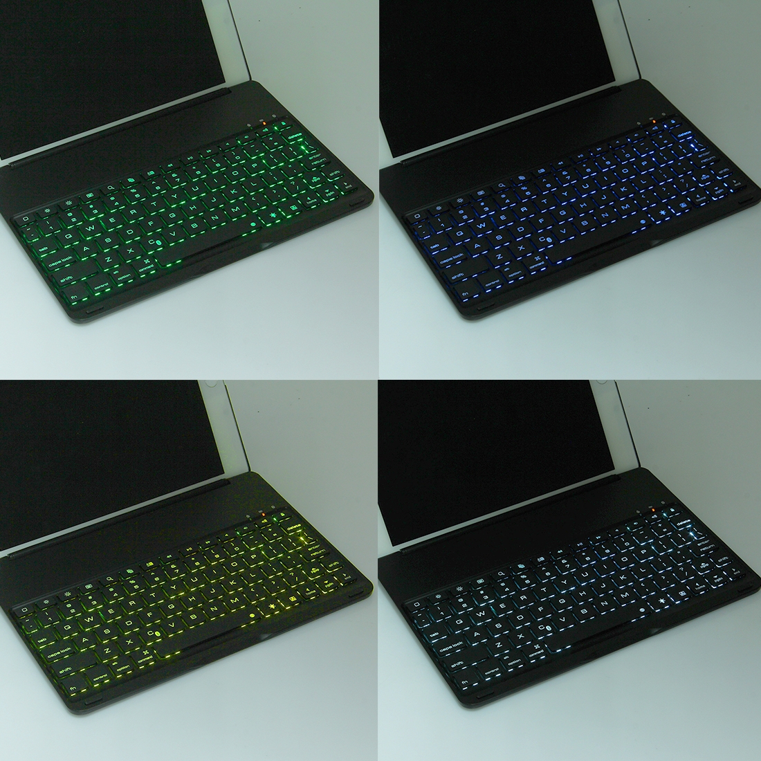 - De Bluetooth-toetsenbord heeft de functie van smart sensing, wanneer u het opent, zal het wakker worden, deze mooie toetsenbord heeft 7 kleuren LED backlights. kleuren worden weergegeven in de afbeelding.