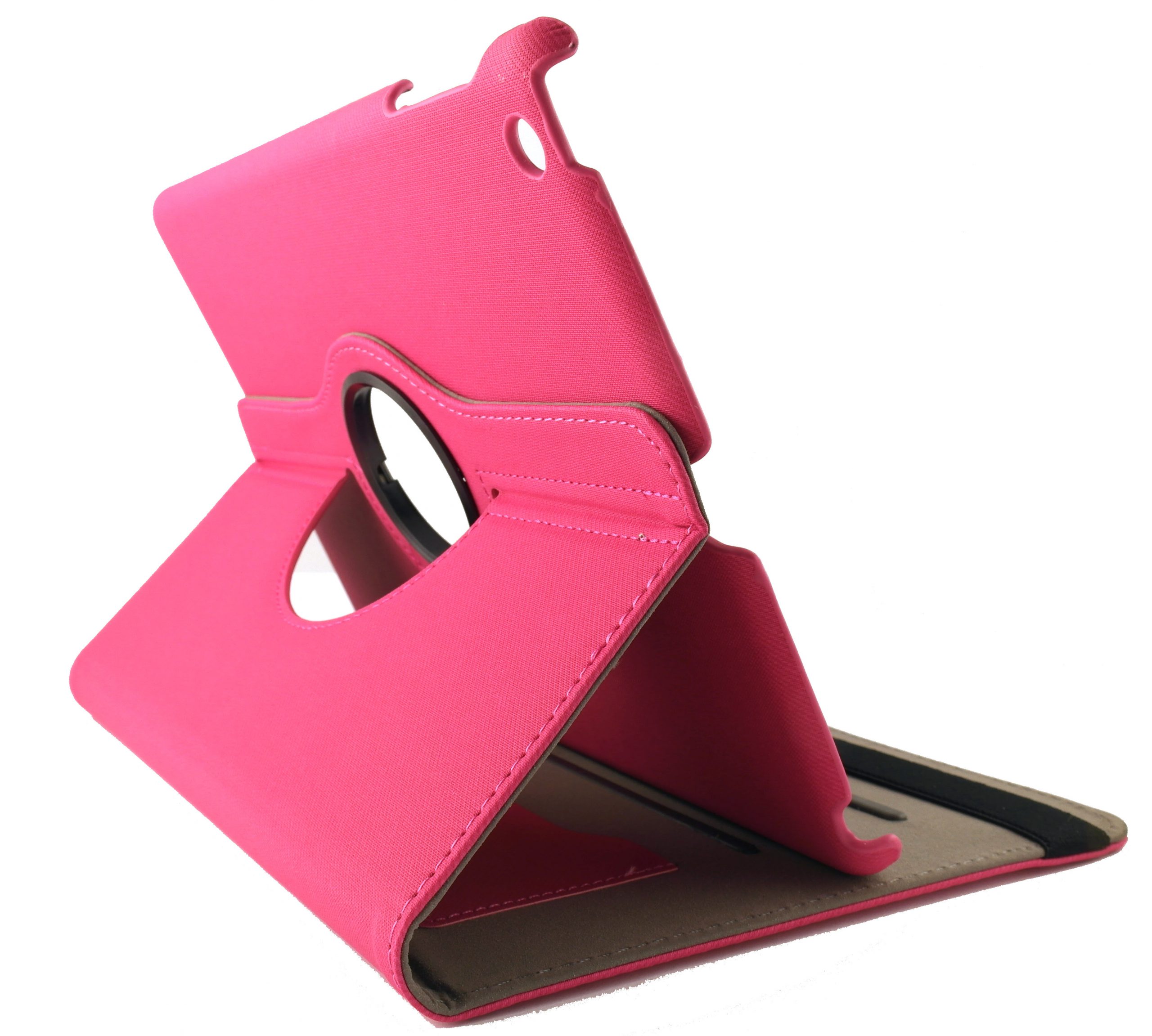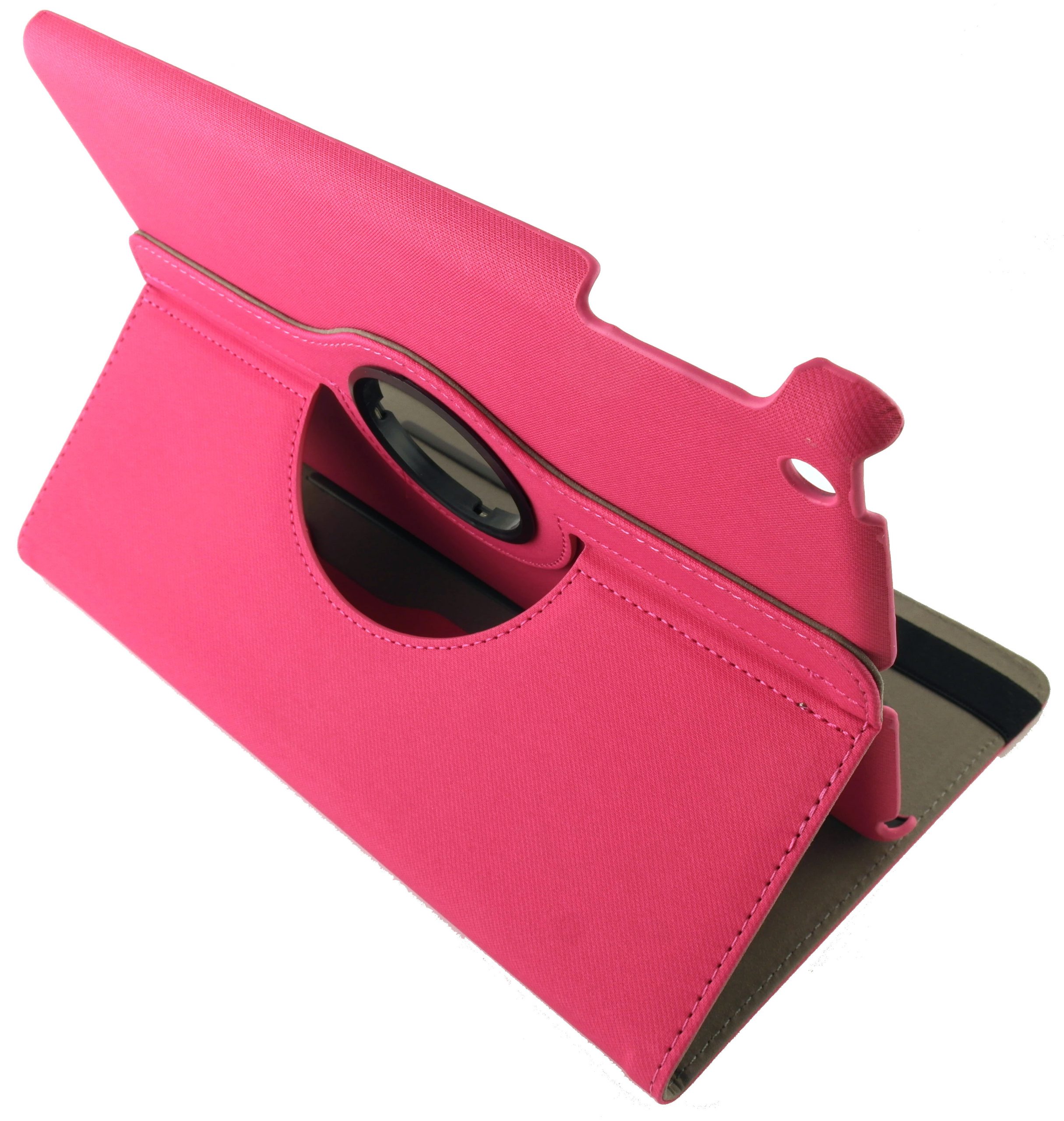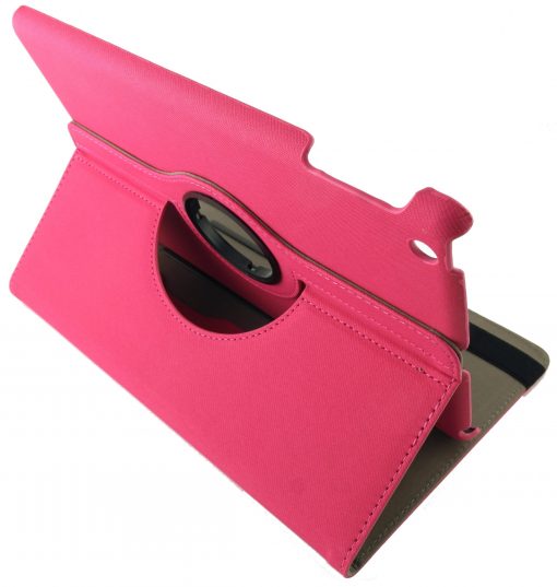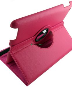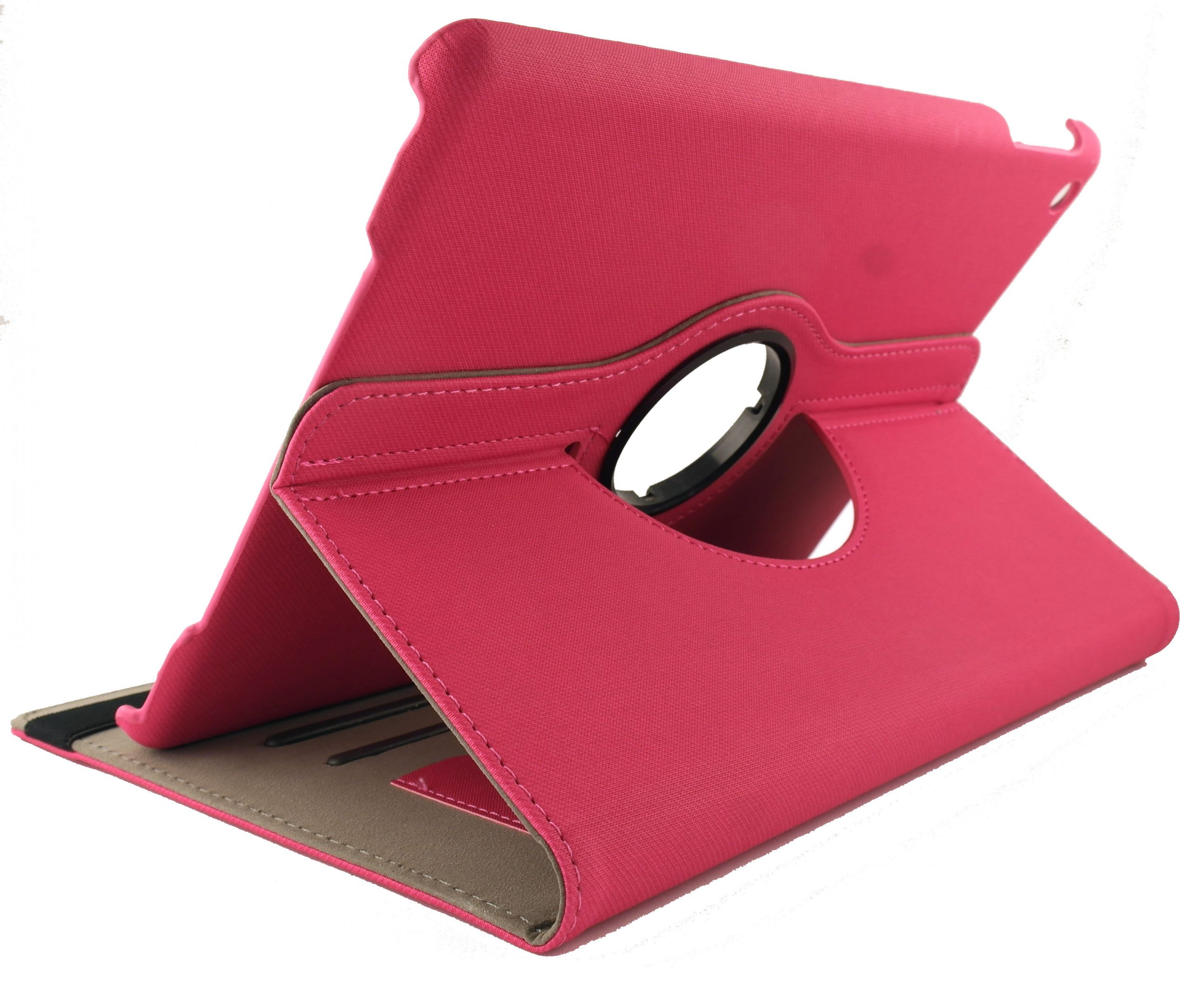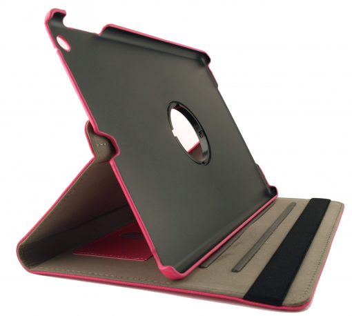 Deze roze pu-lederen iPad Air 360 hoes voorziet jouw tablet van de juiste stevige en stijlvolle bescherming die het apparaat verdient. Deze stevige iPad Air case is gemaakt van een uitstekende kwaliteit leder aan de buitenkant en bekleed met een zachte foam aan de binnenkant van de hoes zodat de tablet perfect beschermd wordt tegen krassen en stoten. Ook heeft deze luxe beschermhoes de mogelijkheid om twee kaarten of passen in op te bergen. Altijd makkelijk en handig!