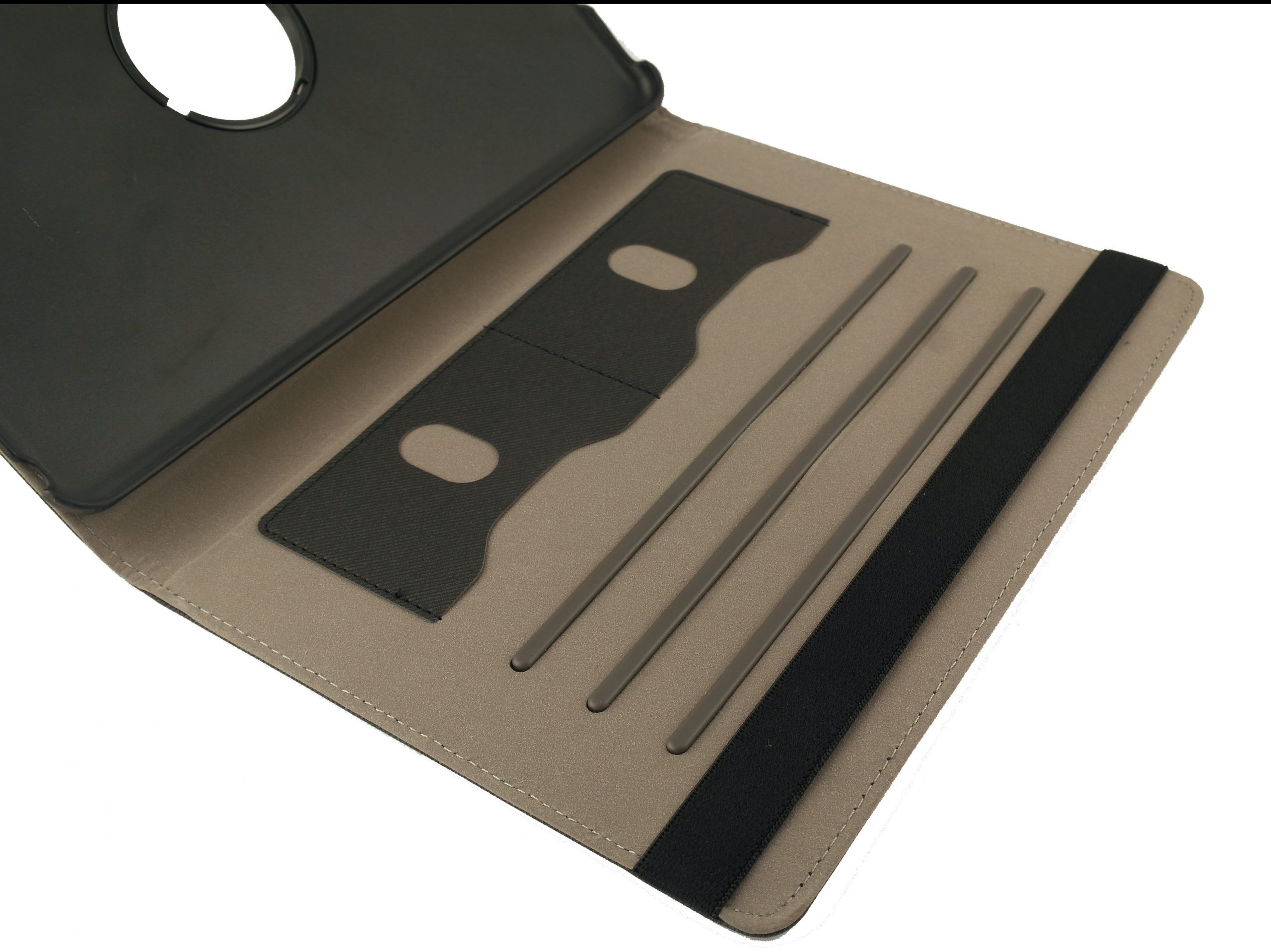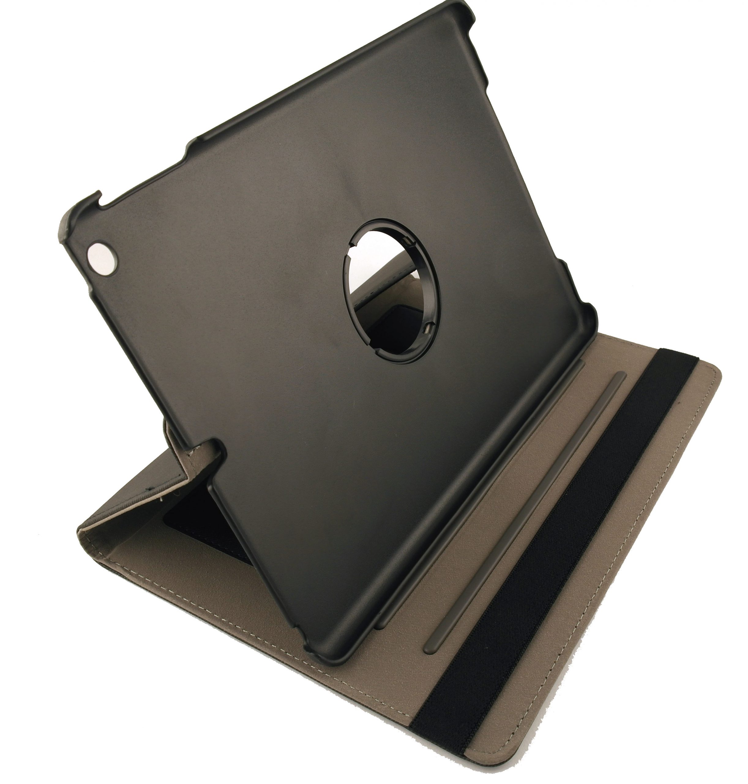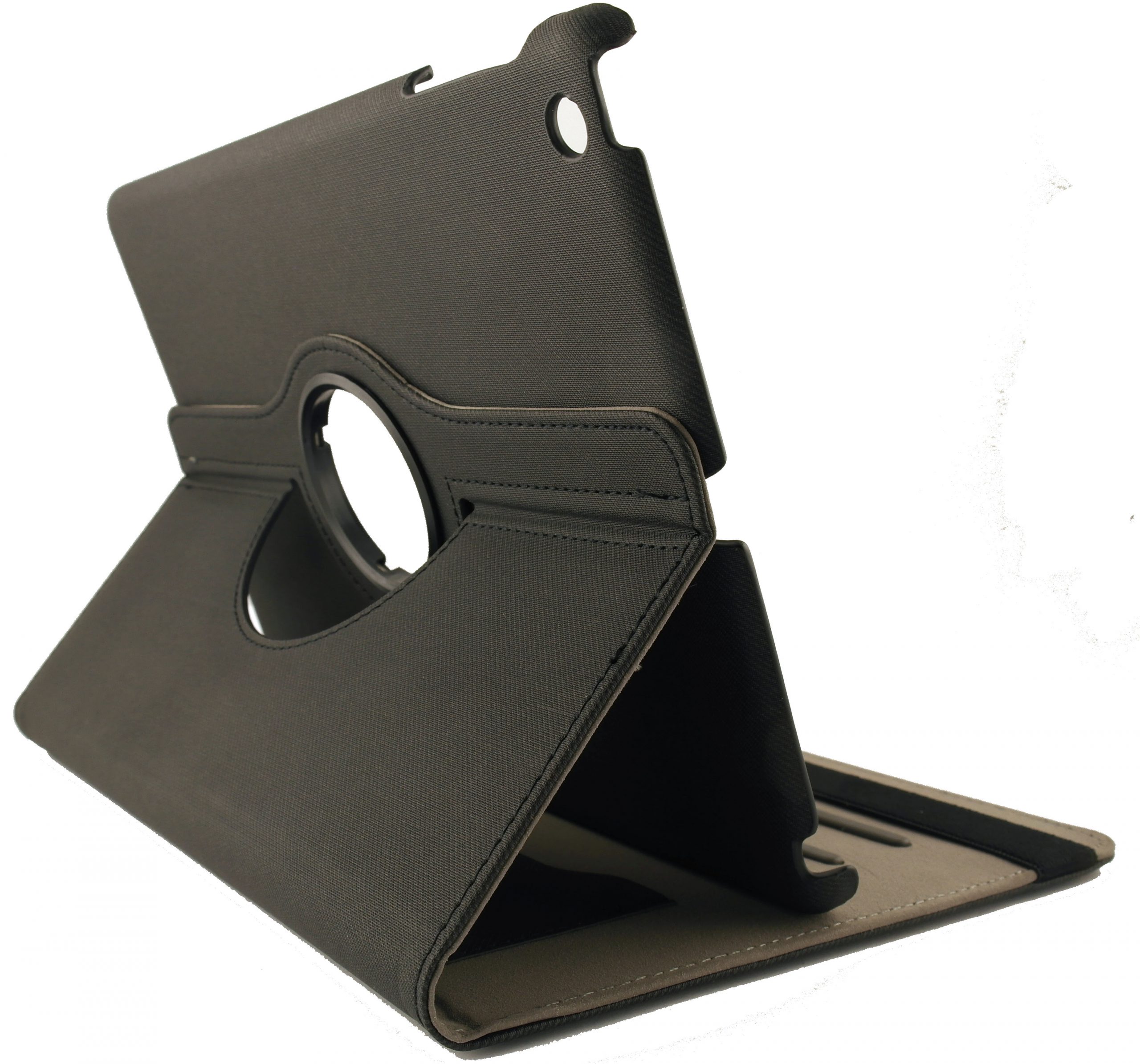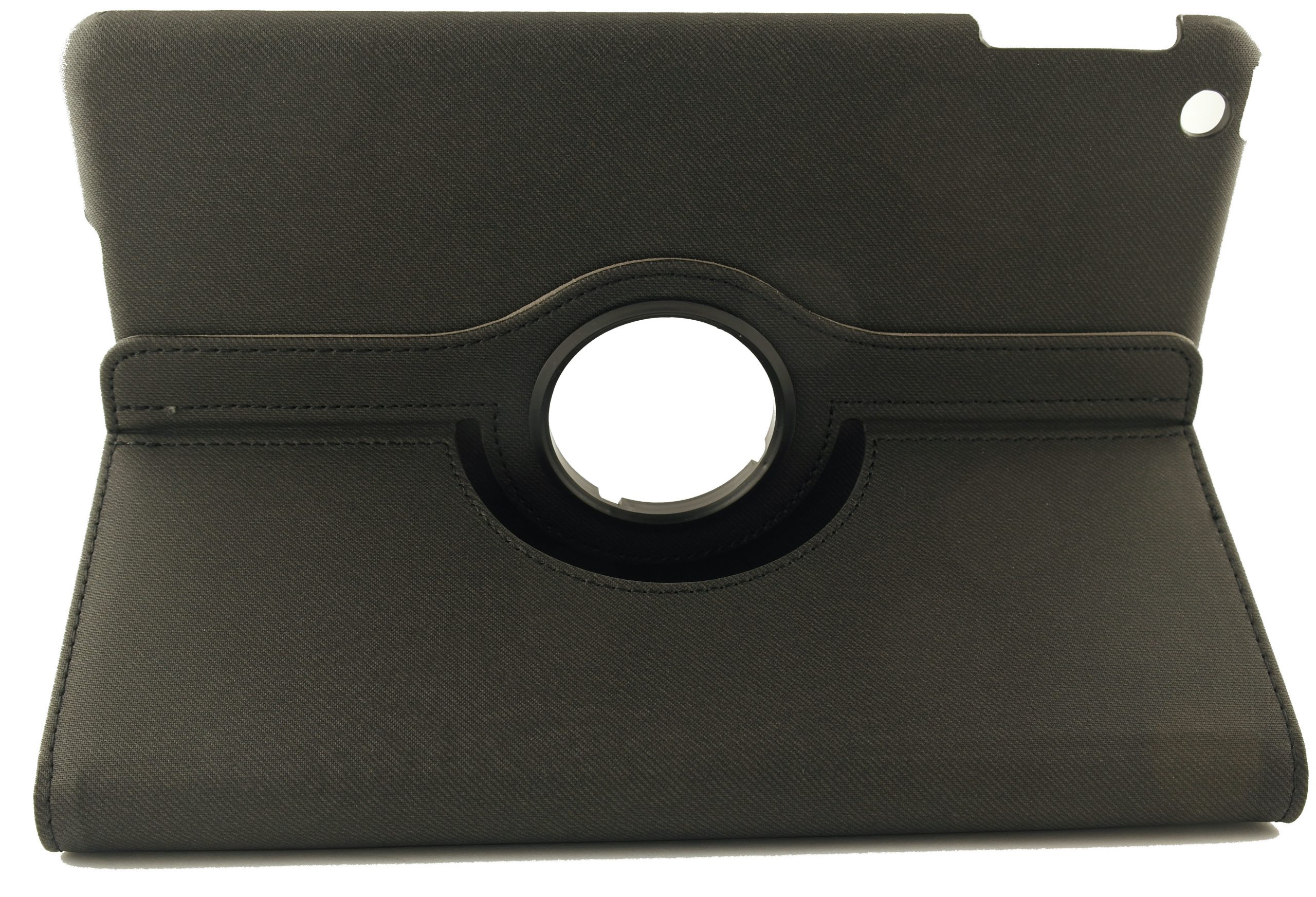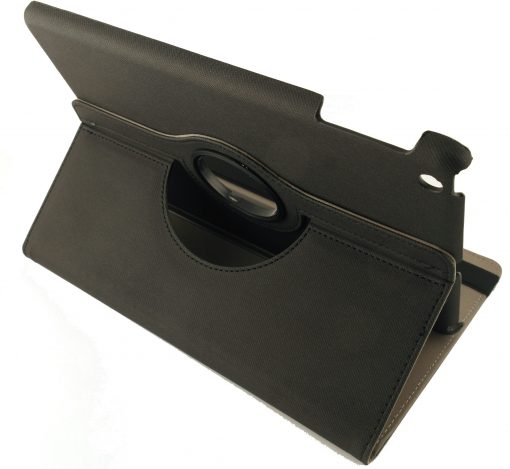 Deze zwarte pu-lederen iPad Air 360 hoes voorziet jouw tablet van de juiste stevige en stijlvolle bescherming die het apparaat verdient. Deze stevige iPad Air case is gemaakt van een uitstekende kwaliteit leder aan de buitenkant en bekleed met een zachte foam aan de binnenkant van de hoes zodat de tablet perfect beschermd wordt tegen krassen en stoten.