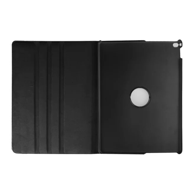 iPad Pro 360 Cover is een pu-lederen hoes en beschermt je tablet tegen krassen, stoten, vuil en andere beschadigingen. Deze zwarte pu-lederen iPad Pro 360 hoes voorziet jouw tablet van de juiste stevige en stijlvolle bescherming die het apparaat verdient. Deze stevige iPad Pro case is gemaakt van een uitstekende kwaliteit leder aan de buitenkant en bekleed met een zachte foam aan de binnenkant van de hoes zodat de tablet perfect beschermd wordt tegen krassen en stoten.