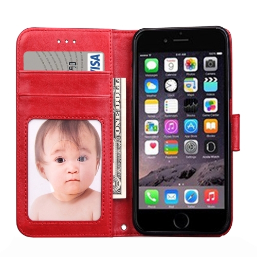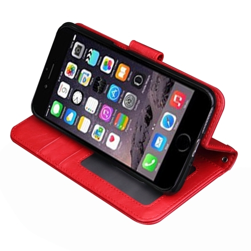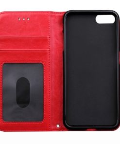 Deze mooie rode pu-lederen cover is comfortabel te dragen en beschermt jouw iPhone 7/8 tegen stof, vuil en vlekken. Dit kunstleer is bijna niet van echt te onderscheiden.