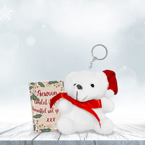 In deze rare tijd wordt alleen maar geadviseerd om afstand te houden. Met deze Kerstknuffel Sleutelhanger Beertje kun je iemand verrassen en toch een kleine knuffel geven. Dus wil jij je vader, moeder, man, vrouw, opa, oma, vriend of vriendin extra aandacht geven? Stuur ze dan een knuffel met een tekst kaartje: Gewoon, omdat ik je een knuffel wil geven! Hoe leuk en origineel is dat. Wij versturen deze sleutelhanger met tekst kaartje in een doosje. Als je wilt dan versturen wij dit pakketje meteen naar de juiste persoon en zetten op de achterkant van het kaartje jouw naam. Persoonlijker kan bijna niet. De kerstbeer past door de brievenbus dus er hoeft niemand thuis te zijn om het te ontvangen.