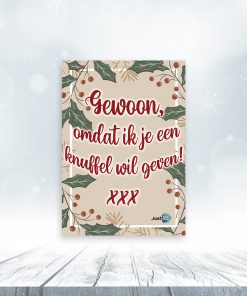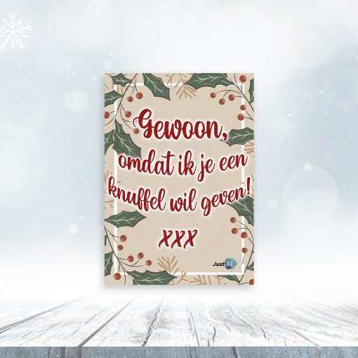 Stuur dit schattige Kerstknuffeltje en bedenk alvast hoe blij de persoon zal reageren op deze knuffel. Met het tekstkaartje: Gewoon, omdat ik je een knuffel wil geven! is alles gezegd. Het knuffeltje is ongeveer 8cm en uiteraard enorm schattig. Ook hiervoor geldt dat wij de beertjes eventueel meteen naar de persoon sturen die jij wilt verrassen en zetten dan ook je naam achterop het kaartje.