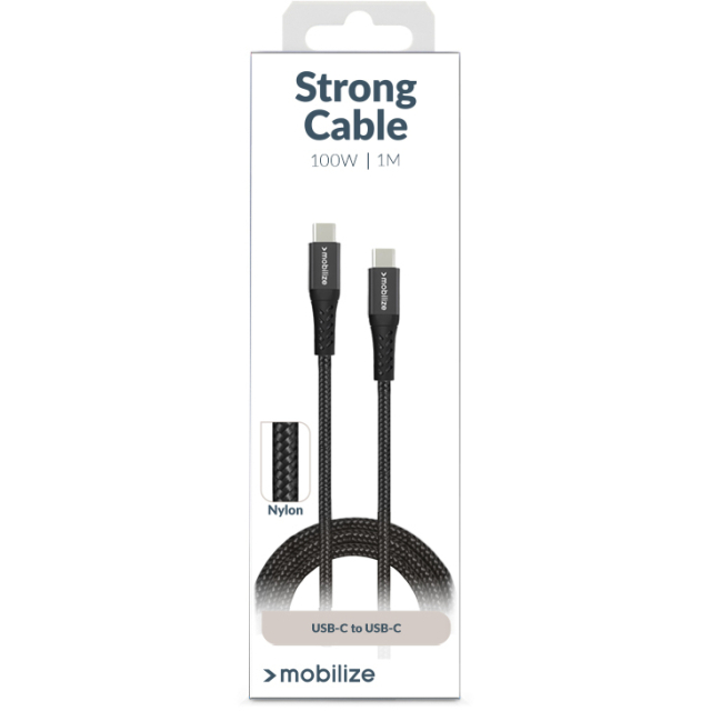 Mobilize Strong Nylon Cable USB-C to USB-C 1m. 100W Black