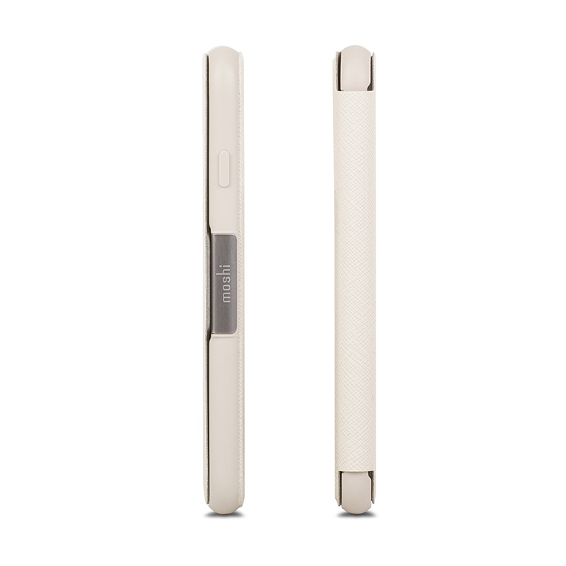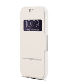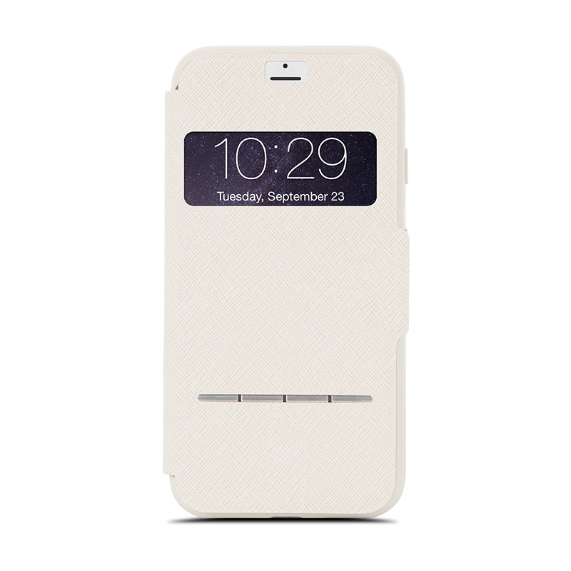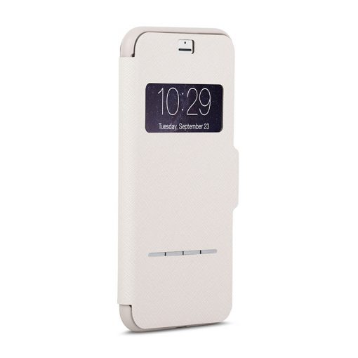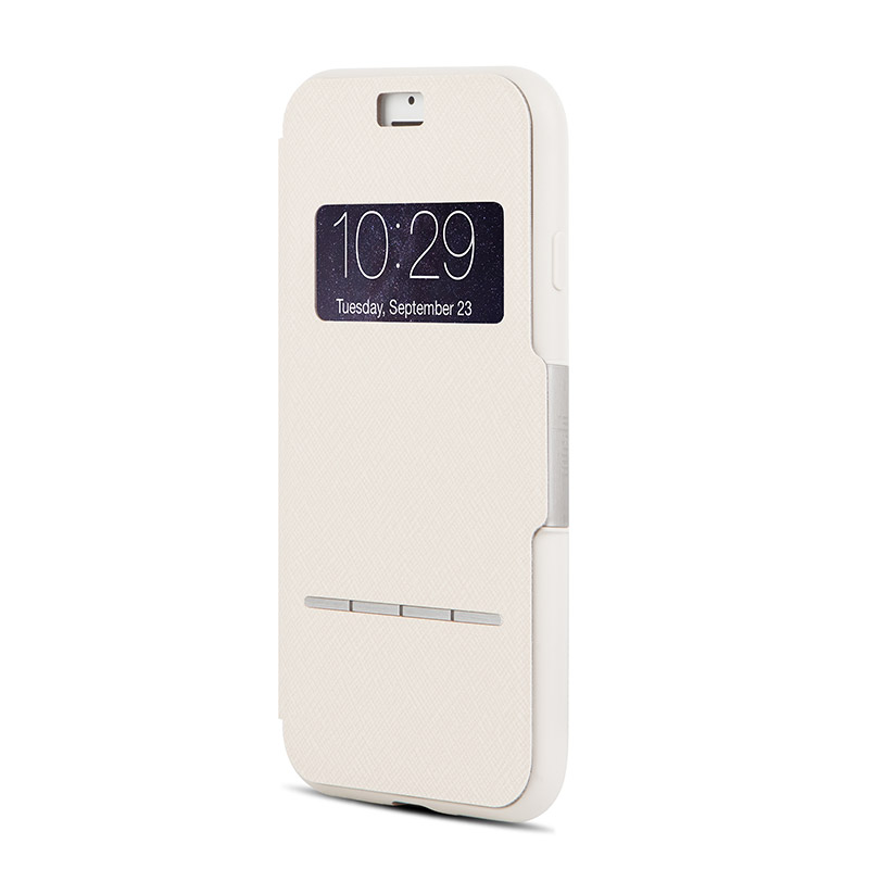 Achter de Moshi SenseCover gaat een knap staaltje techniek schuil. De slanke case is gemaakt van hoogwaardig leer. Dit is een materiaal dat zich stevig om je iPhone 7 heen sluit en de natuurlijke afmetingen niet zal veranderen. In de voorzijde van de klepsluiting is een doorzichtig venster aanwezig. Het venster zorgt ervoor dat je kan zien hoe laat het is, of wie er belt zonder de klep open te hoeven doen. Aan de achterzijde van de SenseCover is een opening aanwezig waardoor het logo van Apple zichtbaar blijft.